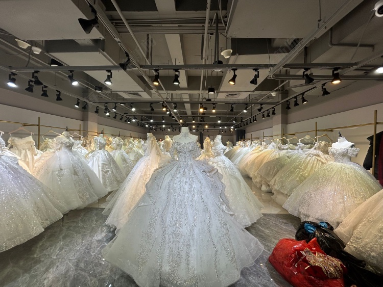 “那時(shí)候你弄個(gè)小店鋪,弄個(gè)樓梯口都可以開店面。”與現(xiàn)在豪華的婚紗城商場(chǎng)不同,霞姐剛創(chuàng)業(yè)時(shí),同行不少店鋪都十分簡(jiǎn)陋,做出來的婚紗也遠(yuǎn)不如現(xiàn)在這般精致,但照樣熱銷。