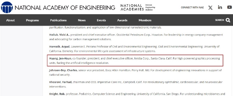 英偉達創始人黃仁勛當選美國工程院院士