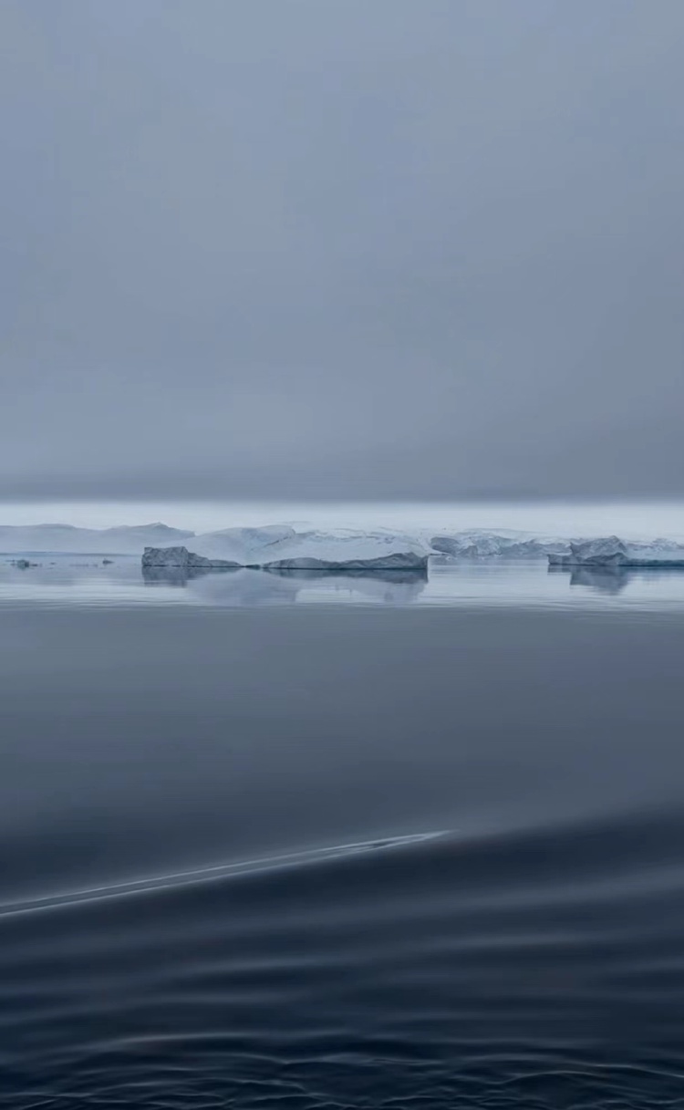 最令胡靜感到印象深刻的南極景色是一處峽灣地帶。“海面是風平浪靜的,有著綿長的紋理,只有輪船駛過時會泛起一些漣漪。天空偏灰度,被水面完整地倒影。白色的冰川在此刻就像是被專門展示出來的景觀。”這樣的景色讓胡靜想起了“太虛幻境”這個詞。