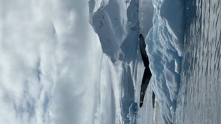 楊冰還記得,在一個天氣晴好的午后,郵輪甲板上開放了燒烤。“這時,船長開始提醒,我們的六點鐘方向有鯨魚,接著,兩點鐘和十二點方向也出現了,”楊冰回憶,“最后船長說,我們被鯨魚包圍了,所以決定停船。請大家到甲板上,盡情享受這個時刻。”此時,所有人就聚在甲板上,欣賞鯨魚擺尾,為鯨魚的每一次擺尾陣陣歡呼。晴空之下,南極的海面會泛著金色的波光。對楊冰來說,這樣的畫面也成了她南極旅行中的金色時刻。