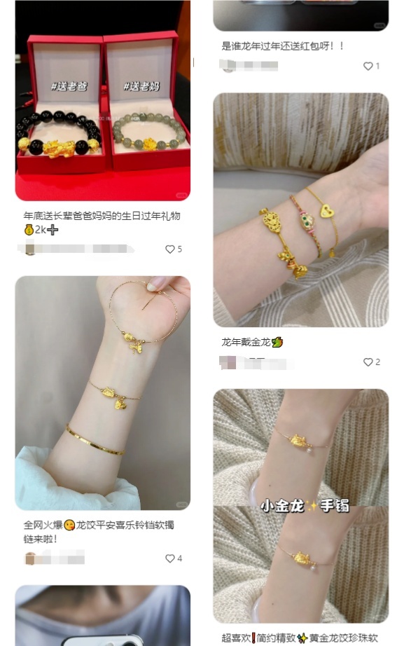 最近幾天,黃金的熱度更甚,在社交平臺上關(guān)于龍年金飾品的討論也是十分熱烈。