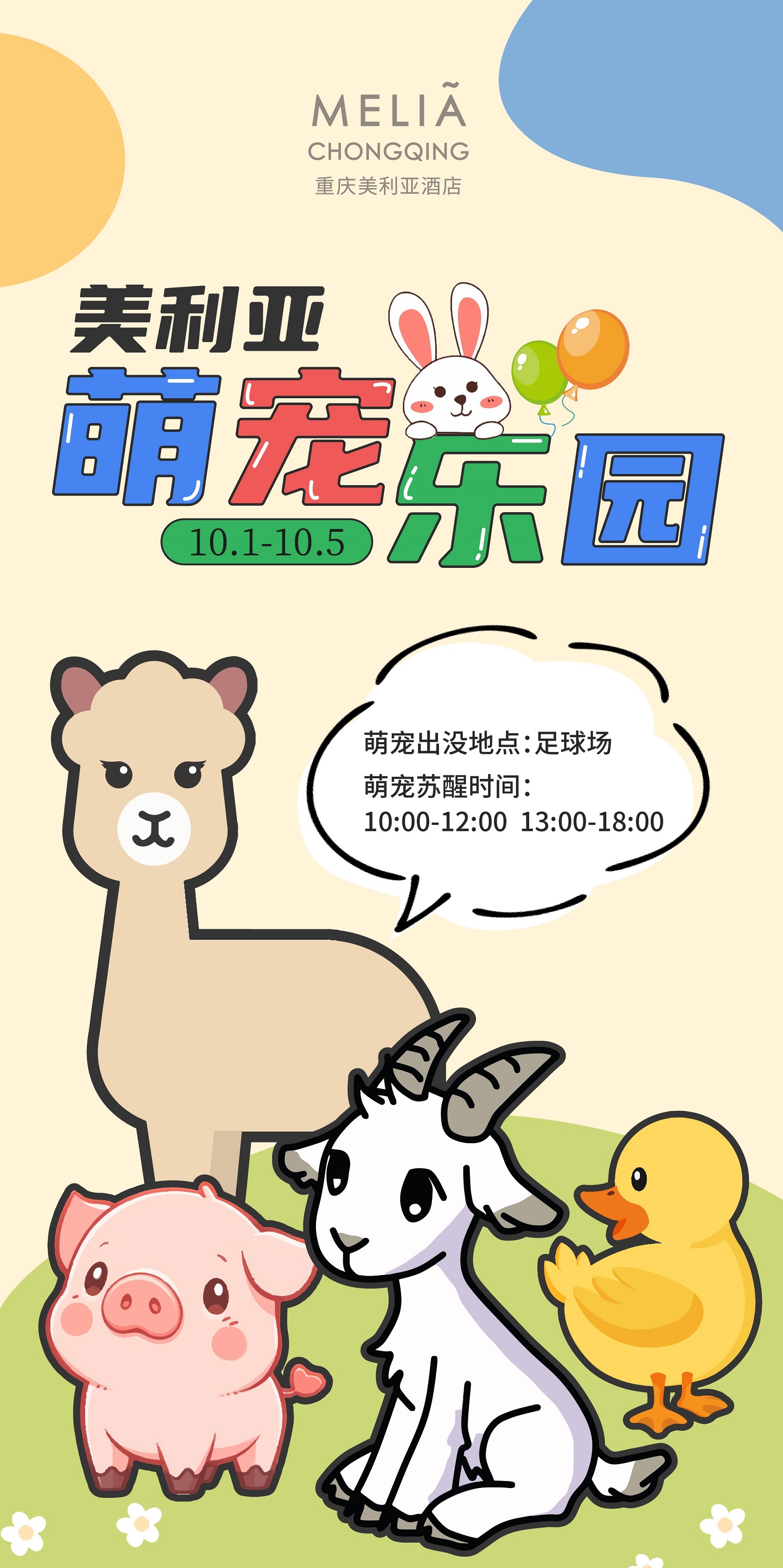 10月1日至5日,萌寵樂園歡樂駕到!羊駝、柯爾鴨、小香豬、梅花鹿等可愛萌寵等你來;更有親子mini馬拉松,皮劃艇,有氧健身鼓,漆扇制作,竹編畫制作等精彩店內活動全面放送!