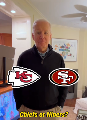 報道說,當被問及“為堪薩斯城酋長隊還是舊金山49人隊加油”的問題時,拜登在回答時選擇了費城老鷹隊,他給出的原因是否則他“會一個人睡覺”,因為他的妻子喜歡費城老鷹隊。當被問及“更喜歡(橄欖球運動員)特拉維斯·凱爾西還是杰森·凱爾西”的問題時,拜登給出的回答是特拉維斯·凱爾西的母親,并稱“我知道她做的巧克力曲奇餅干很好吃”。