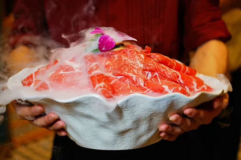 還有海鮮拼盤堆得像小山,M7和牛下鍋幾秒就香得流油