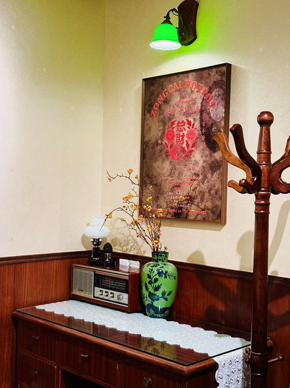 一腳踏進包房,80年代的豪華感瞬間把人裹住。水晶吊燈亮得晃眼,木質家具摸著手感厚重,連小擺件都透著老時光的精致,“復古”不是掛在墻上的字,是坐在這兒就有的踏實貴氣。更有意思的是這兒的儀式感——剛坐下,一句“吃總財,當總裁,發大財”就送到耳邊,不是虛頭巴腦的客套,是熱熱鬧鬧的好彩頭,聽著就覺得這頓飯,好運先來了一半。