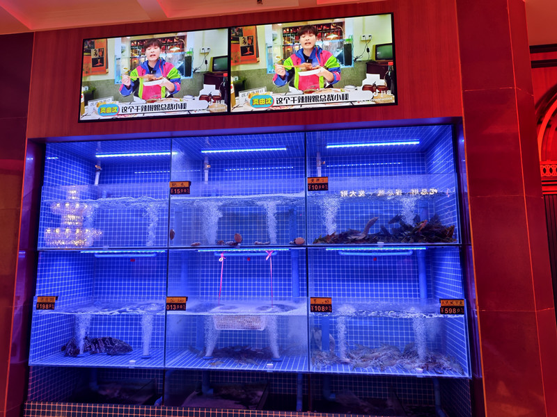 在總財,“新鮮”是能看見、能摸著的。明檔廚房里,廚師清洗、切菜的動作清清楚楚,沒有一點藏著掖著;旁邊的明檔海鮮池更有意思,螃蟹橫著走,蝦子蹦蹦跳,剛撈出來的海鮮還帶著水珠子,鮮不鮮一眼就知道。