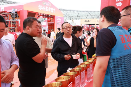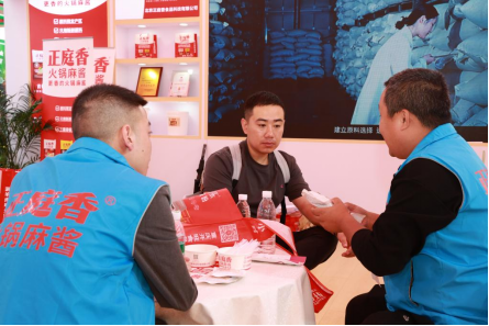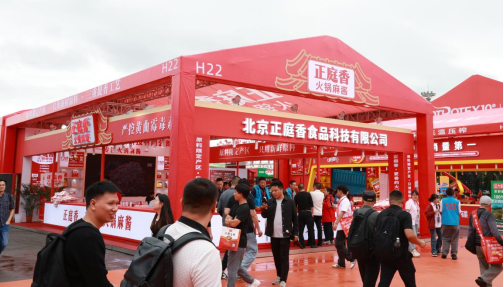 正庭香火鍋麻醬展位人潮涌動,往來客商紛紛駐足洽談