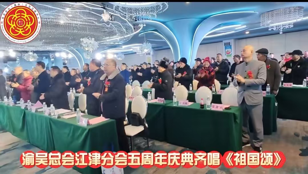 歲首嘉時逢盛會,賢才雅士同堂。華堂煥彩韻悠揚,共商族事興邦。2025 年元月 2 日 9 時 28 分,江津區維也納國際酒店二層會議廳內熱鬧非凡,渝吳總會江津分會五周年慶典暨迎新團拜會在此盛大舉行。